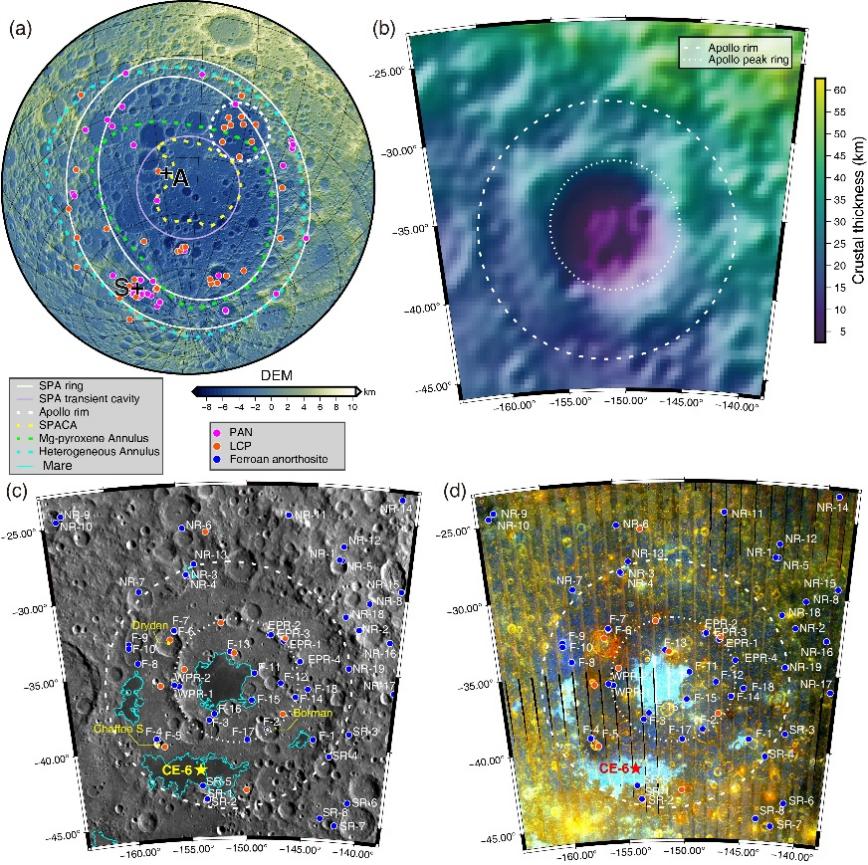 这一研究在阿波罗盆地系统识别出丰富的纯斜长岩露头,表明经历SPA和阿波罗盆地撞击事件后,该区域的原始月壳成分未被完全移除,且可能被后期撞击坑挖掘出露。同时,该研究弥补了此前对阿波罗盆地区域原始月壳分布认识的不足,为嫦娥六号着陆点附近的地质演化与采样背景提供了重要参考。