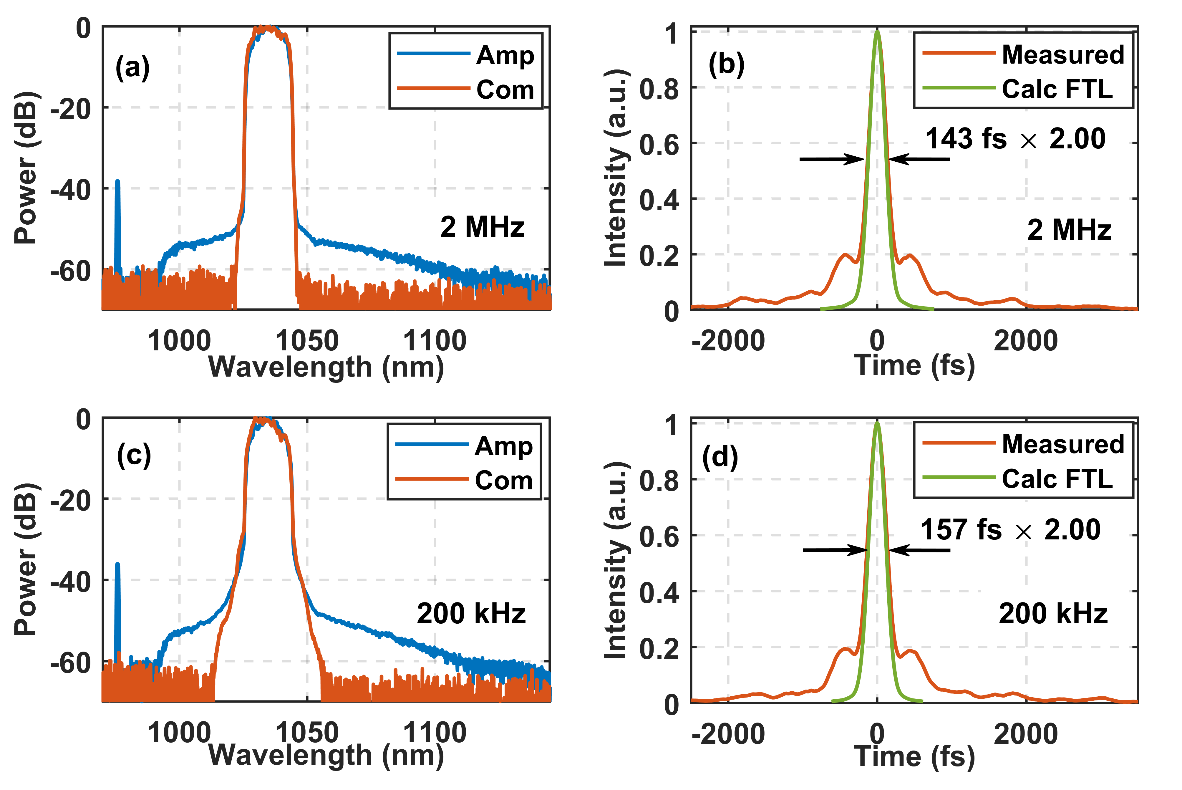 近期,中国科学院上海光学精密机械研究所科研人员在重频可调的微焦级超快光纤激光研究方面取得进展。研究人员基于光纤啁啾脉冲放大技术,采用定制的啁啾光纤布拉格光栅作为脉冲展宽器,并匹配透射式光栅压缩器的二阶、三阶色散,实现了脉冲能量微焦级的飞秒脉冲。研究显示,该光纤激光系统利用光纤式声光调制器进行脉冲选单,可实现脉冲重频在200kHz至2MHz范围内灵活调节,即在2MHz重频下,系统可输出1μJ、143fs的脉冲;在200kHz重频下,系统可输出10μJ、157fs的脉冲,且系统工作在其他重频下的输出脉冲宽度均小于180fs。该系统功率稳定性和光束质量优异,为实际应用提供了可靠性能保障。