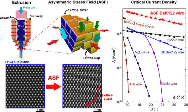 铁基超导具有上临界场高、各向异性小、制备成本低等优点,在下一代高能粒子加速器、可控核聚变装置和高场磁共振成像系统等领域具有应用优势。高载流性能铁基超导线材是实现上述高场强电应用的基础。为获得高载流性能,需构建高密度纳米级磁通钉扎中心。由于高温超导体普遍为非金属材料,具有本征脆性,在铁基超导体中引入高密度位错作为钉扎中心极具挑战。
