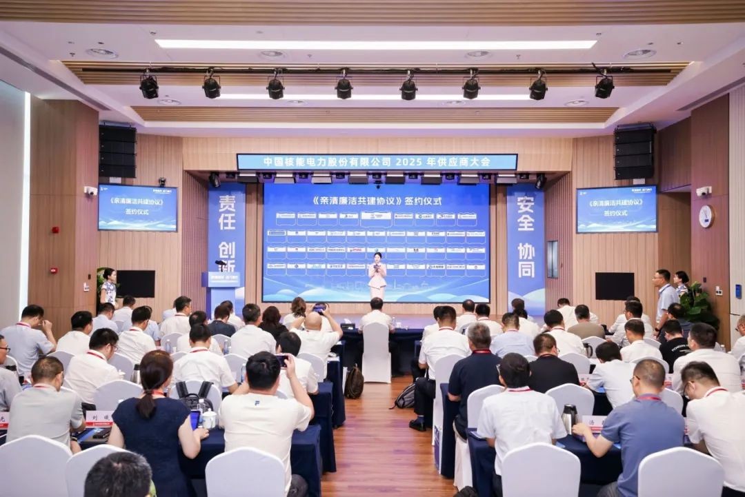 军工资源网 2025年09月04日8月15日,中国核电在杭州召开2025年供应商大会,作《以亲清生态建设赋能产供链高质量发展,携手践行强核报国》的主旨报告,与合作伙伴代表共同签署《亲清廉洁共建协议》,郑重倡议产供链(即“产业链供应链”简称)合作伙伴共同构建“亲而有度 清而有为”的合作关系,以“亲清”护航核电产供链高质量发展。
