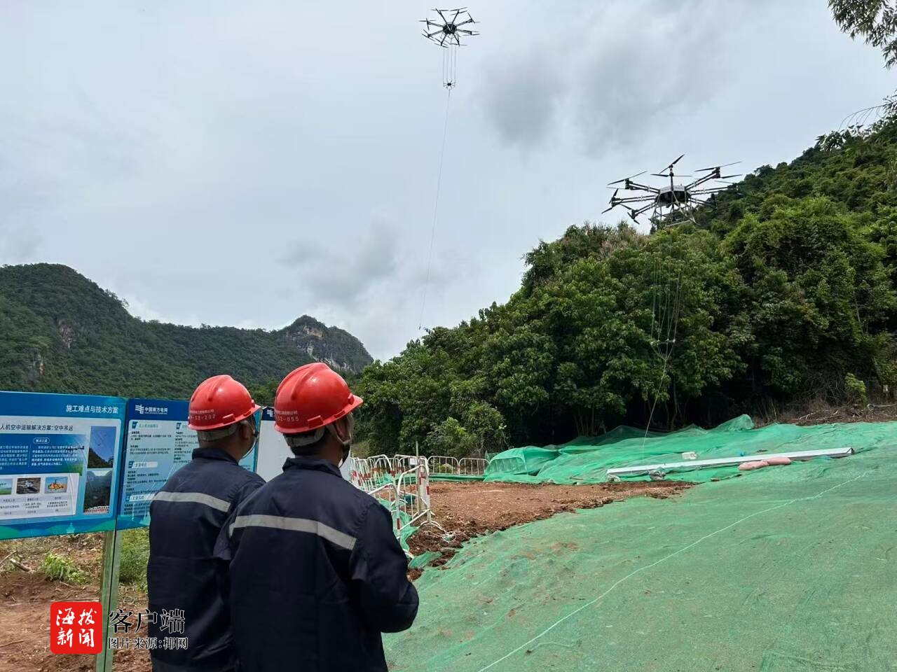 “面对山区复杂的地形地貌,无人机能灵活绕开地表障碍,实现‘点对点’精准投送。这不仅能减少人力投入提高施工效率,还能减少生态破坏。”海南电网建设分公司500千伏第Ⅱ业主项目经理陶海锋说。