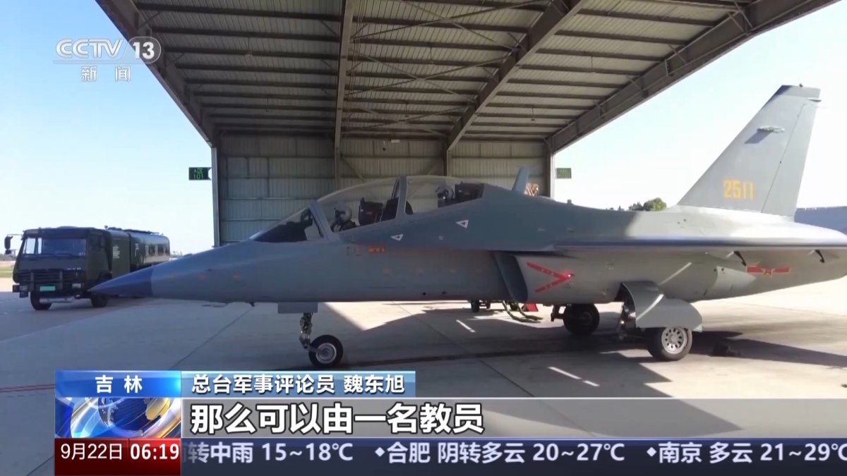 总台军事评论员魏东旭:教10是一种双发的高级教练机,可以说它也是我们国产最先进、最现代化的高级教练机之一。首先它是可以进行超声速飞行的,另外一个低空的飞行性能非常好,因为它采用了独特的外形和边条设计。采用的也是经典的串联式的座舱,可以由一名教员再带一名飞行学员在空中进行教学训练。