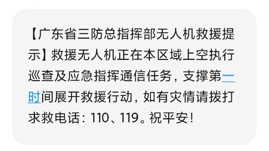 除了灾情侦察,“翼龙”-2无人机还承担了应急通信保障任务。通过机载三网通和700MHz公网基站设备恢复公网,向通信中断区域群众发送无人机救援提示短信,不少群众利用手机通过临时恢复的公网信号向家人报了平安。“这有效缓解了当地群众的焦虑情绪,有利于减少次生风险。”上述负责人说。