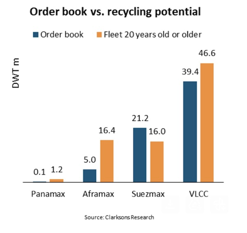 BIMCO首席航运分析师Niels Rasmussen指出:“原油油轮订单/船队比在触底至后持续回升,如今已攀升至九年来新高的14.1%,当前的订单潮可能会启动船队更新的进程。”