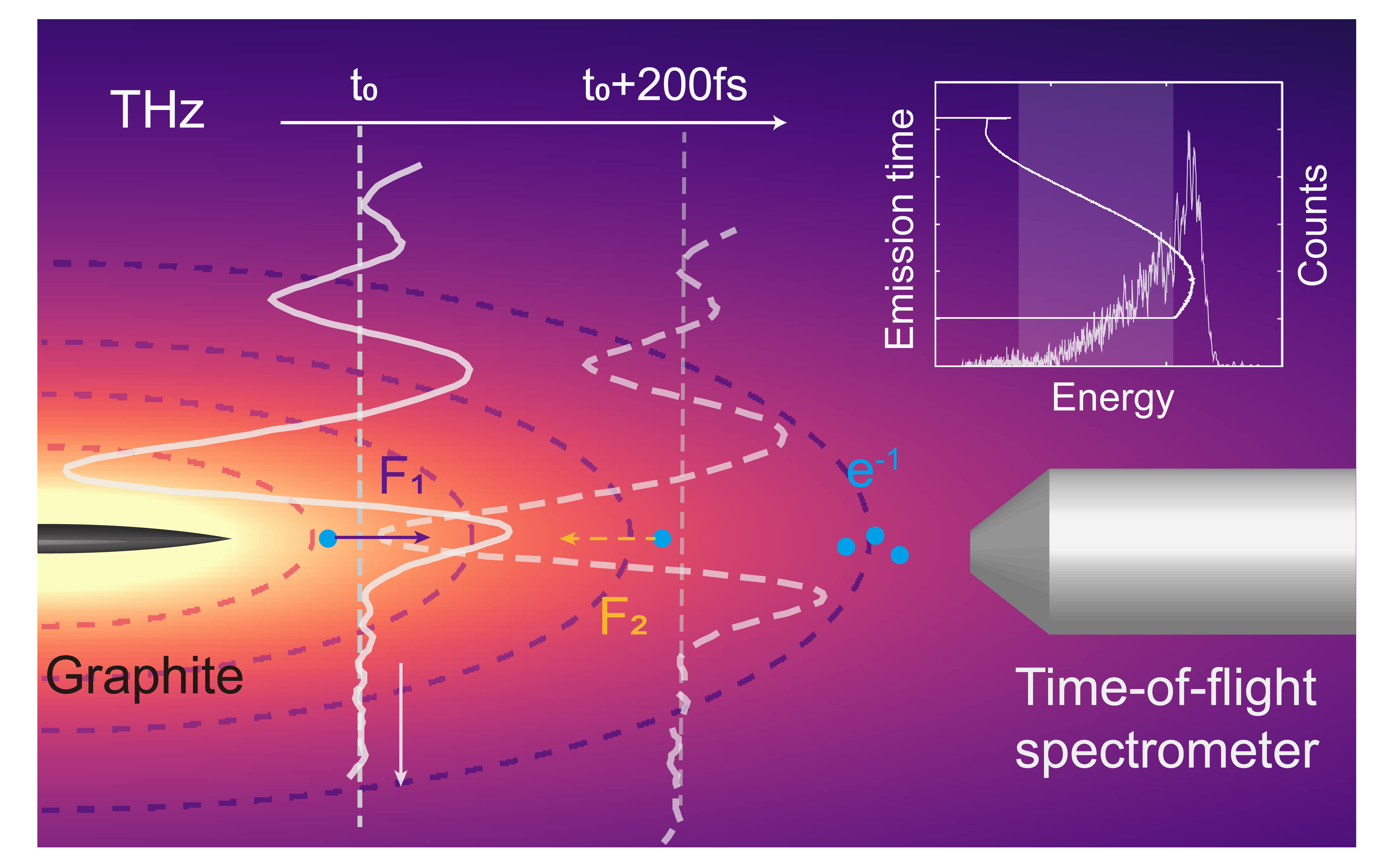 太赫兹驱动电子飞秒动力学与脉宽重构示意图