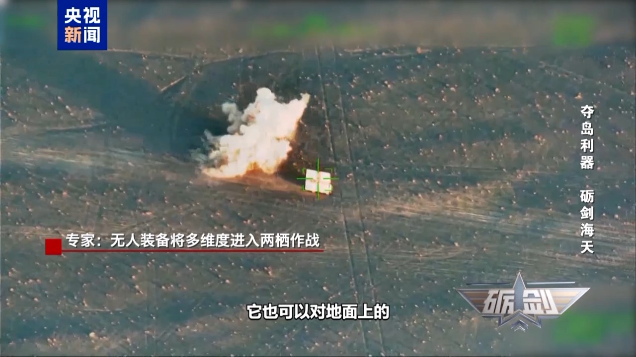 军事专家曹卫东:两栖作战中,无人机首先可以先期投放出去,对阵地进行侦察和监视。因为它可以悬停在特殊目标上空,不间断地停留进行侦察监视,同时也可以完成中继通信任务。给它搭载上小型爆炸物,也可以对地面上的目标进行打击。
