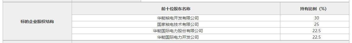 1月16日,北京产权交易所披露了《华能石岛湾核电开发有限公司20%股权》产权转让信息。目前,华能石岛湾核电开发有限公司股权结构为:华能核电开发有限公司持股30%,国家核电技术有限公司持股25%,华能国际电力股份有限公司持股22.5%,华能国际电力开发公司持股22.5%。