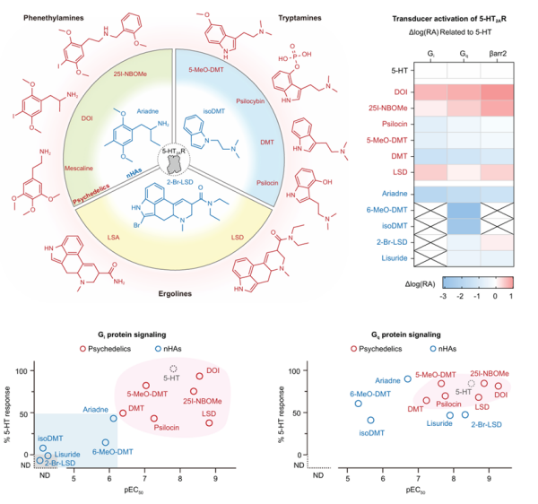 中国科学院长春应用化学研究所等合作,系统表征了5-HT2A受体激活后触发的下游信号级联反应,首次确证Gi信号通路在致幻剂作用中的关键功能,揭示了经典致幻剂作用的新机制。
