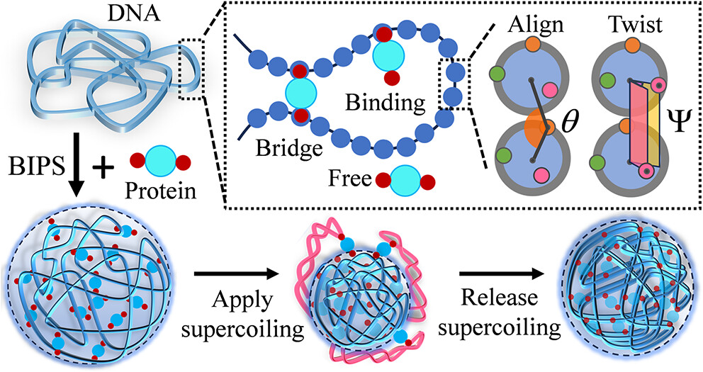 军工资源网 2026年02月09日在生物大分子体系中,电荷作用、氢键、疏水作用、π–π与阳离子—π等非共价相互作用,决定蛋白与核酸如何识别、组装并形成生物分子凝聚体。对染色质相关凝聚体而言,这些“相互作用网络”之外,还存在一个关键自由度——DNA在转录与拓扑异构酶调控下不断积累/释放扭转载荷,形成DNA超螺旋。超螺旋不仅可能改变蛋白—DNA的结合几何与多价桥联方式,更可能直接重塑凝聚体的内部结构与尺寸演化路径。