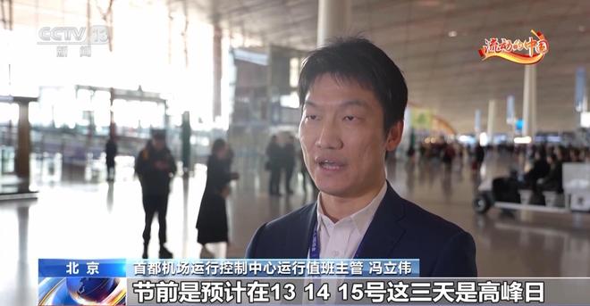 首都机场运行控制中心运行值班主管冯立伟:从预测来看,节前13日、14日、15日这三天是高峰日,返程预计出现在22日到23日,日均旅客量超过21万人次。