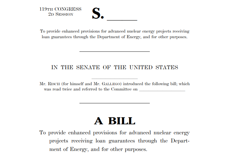 军工资源网 2026年02月24日2月10日,美国共和党参议员吉姆·里施(Jim Risch)(爱达荷州)与民主党参议员鲁本·加列戈(Ruben Gallego)(亚利桑那州)向参议院重新提出了《加速可靠容量法案》 (Accelerating Reliable Capacity Act)。