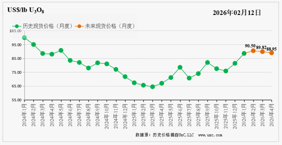 CNEA国际天然铀价格预测指数(2026年2月)
