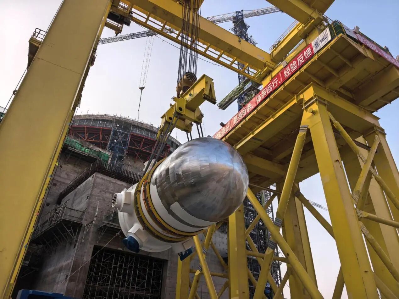 2月8日,山东招远核电项目1号机组,反应堆厂房钢衬里模块二顺利完成吊装。