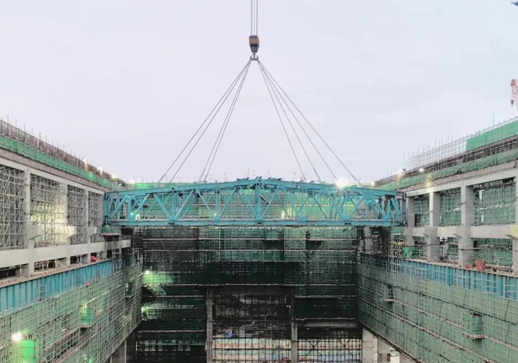 2月9日,陆丰核电项目1号机组常规岛主厂房钢屋架完成首吊。