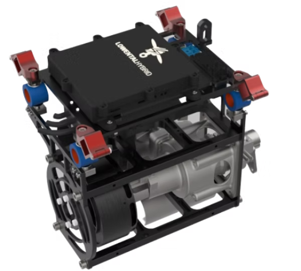 LH系列产品支持在电力和燃油动力飞行间随意切换,最大支持120千克级别的固定翼无人机,并宣称能提供5倍的续航时间。LH系列目前有从01到04共4个型号,总体设计特征近似,但外形随二冲程活塞燃机部分的体积和具体布置有所差异。