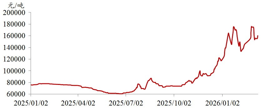 碳酸锂价格的主要影响因素包括供需、库存、宏观、政策、市场情绪等。3月11日,碳酸锂期货2605合约收跌5.14%,至155040元/吨。MySteel数据显示,上海钢联优质电池级碳酸锂价格为159900元/吨,工业级碳酸锂价格为156250元/吨。从基本面来看,3月,供需双增,下游逢低补库,对高价货源接受程度偏低,预计后市碳酸锂价格在140000元~175000元/吨区间宽幅震荡。