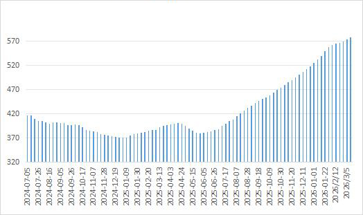 库存方面,Mysteel数据显示,截至3月12日,国内氧化铝总库存为577万吨,周环比增加4.8万吨,同比增加185.6万吨,供应较为宽松。目前,各环节库存表现有所分化,高库存仍是压制市场的核心因素,后续需关注库存拐点及产能出清节奏。