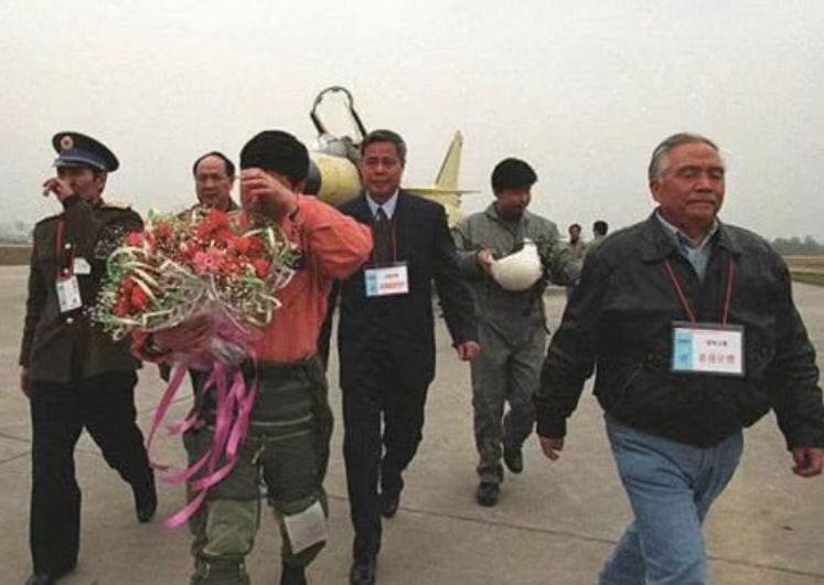 歼-10首飞成功后,宋文骢(右)和试飞员雷强等人泪流满面