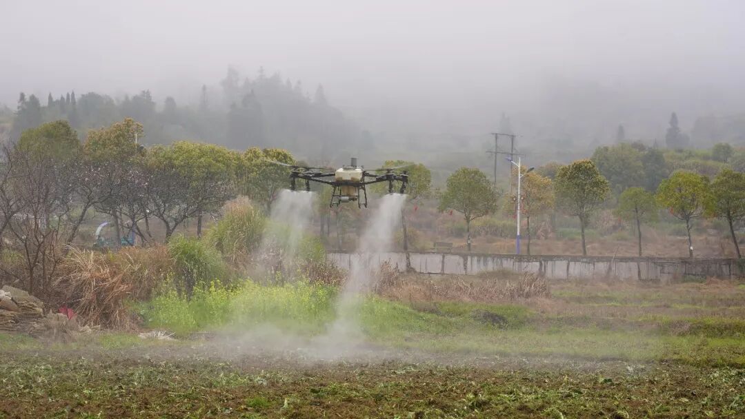 在开阔的田野上,技术人员进行模拟植保作业演示,展示了其在精准施药、提高效率、节省人力方面的显著优势,让在场农民直观感受到“科技种田”的魅力,切实帮助农民解决生产中的实际困难,提升农业生产效率和科技含量,为全年粮食丰产丰收、农民持续增收打下坚实基础,有力护航春耕生产顺利进行。