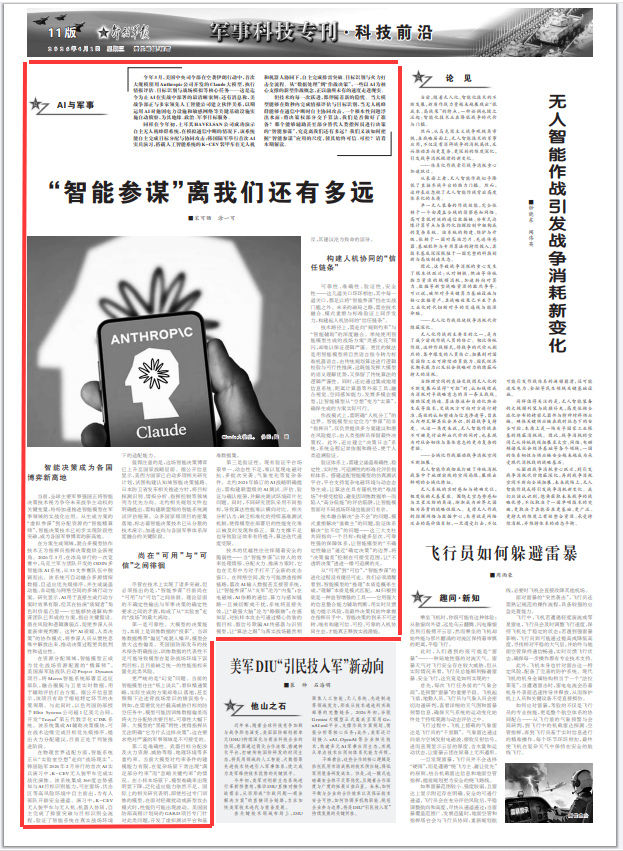 但技术的每一次跃进,都伴随着新的隐忧。当大模型能够在数秒内完成情报评估与目标识别,当无人机蜂群能够在通信中断时自主协同攻击,一个根本性问题浮出水面:将决策权部分交予算法,我们是否做好了准备?那个能够辅助甚至部分替代人类指挥员进行决策的“智能参谋”,究竟离我们还有多远?我们又该如何把握“智能参谋”应用的尺度,使其始终可信、可控?请看本期解读。