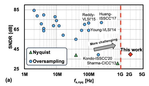 军工资源网 2026年04月15日随着人工智能、超高速无线、有线互联技术的发展,面向GHz级带宽信号处理的高速模数转换器需求日益迫切。同时,先进的互补金属氧化物半导体工艺正向低电压、高集成度方向演进,传统依赖模拟放大器的模数转换器架构,在速度、功耗和工艺可扩展性等方面面临挑战。因此,基于压控振荡器的模数转换器(VCO-based ADC)凭借高度数字化、结构简洁、适配先进工艺的优势,成为实现高性能数据转换的重要技术方向,但其工作频率难以突破GHz级瓶颈,制约了进一步发展。