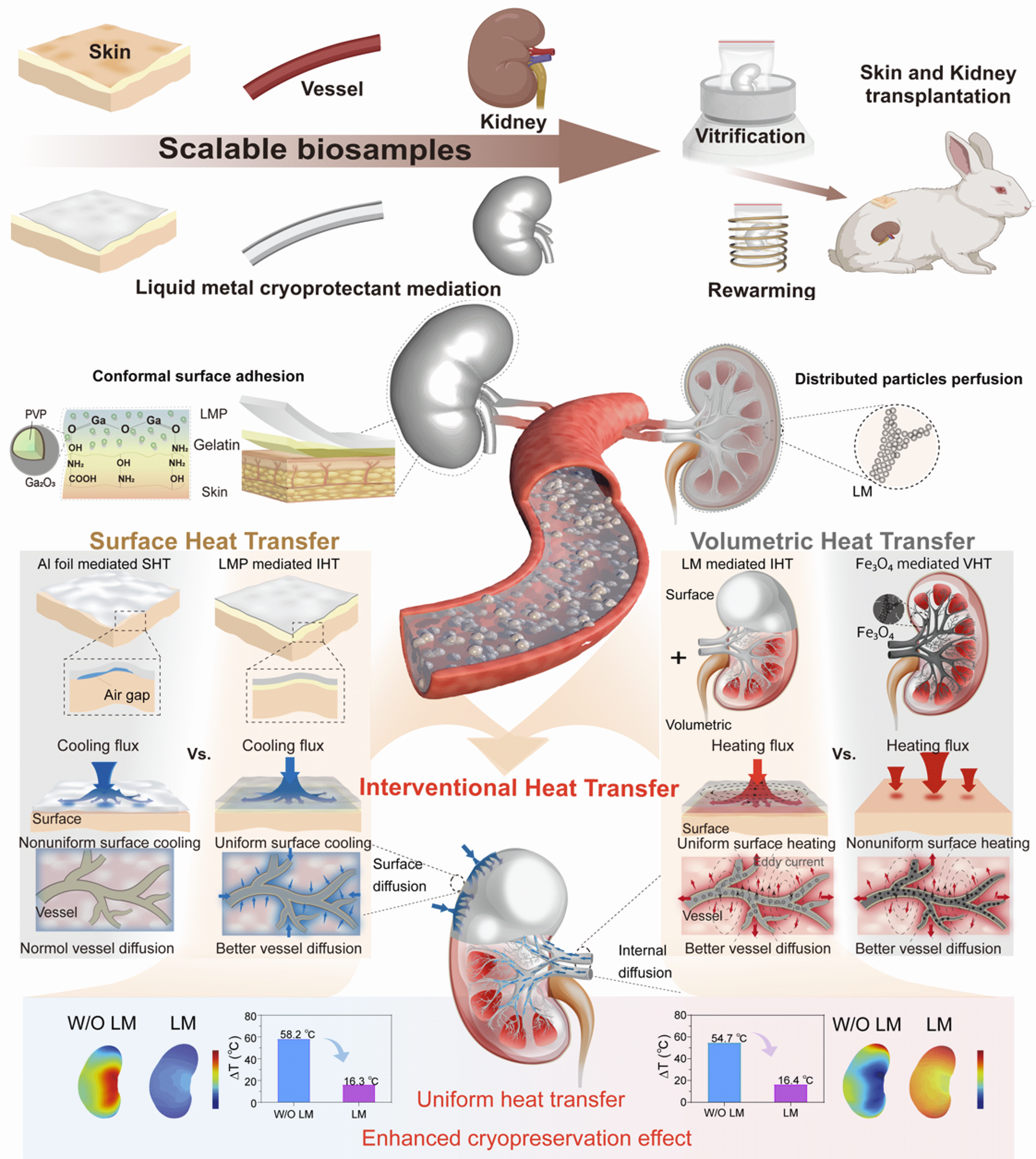 未来,液态金属低温保护剂及介入强化冻存与复温技术可进一步拓展至人体尺度器官(如肾脏、肝脏、心脏等)的长期低温保存中,从而为器官移植、组织工程与再生医学带来变革性发展契机。